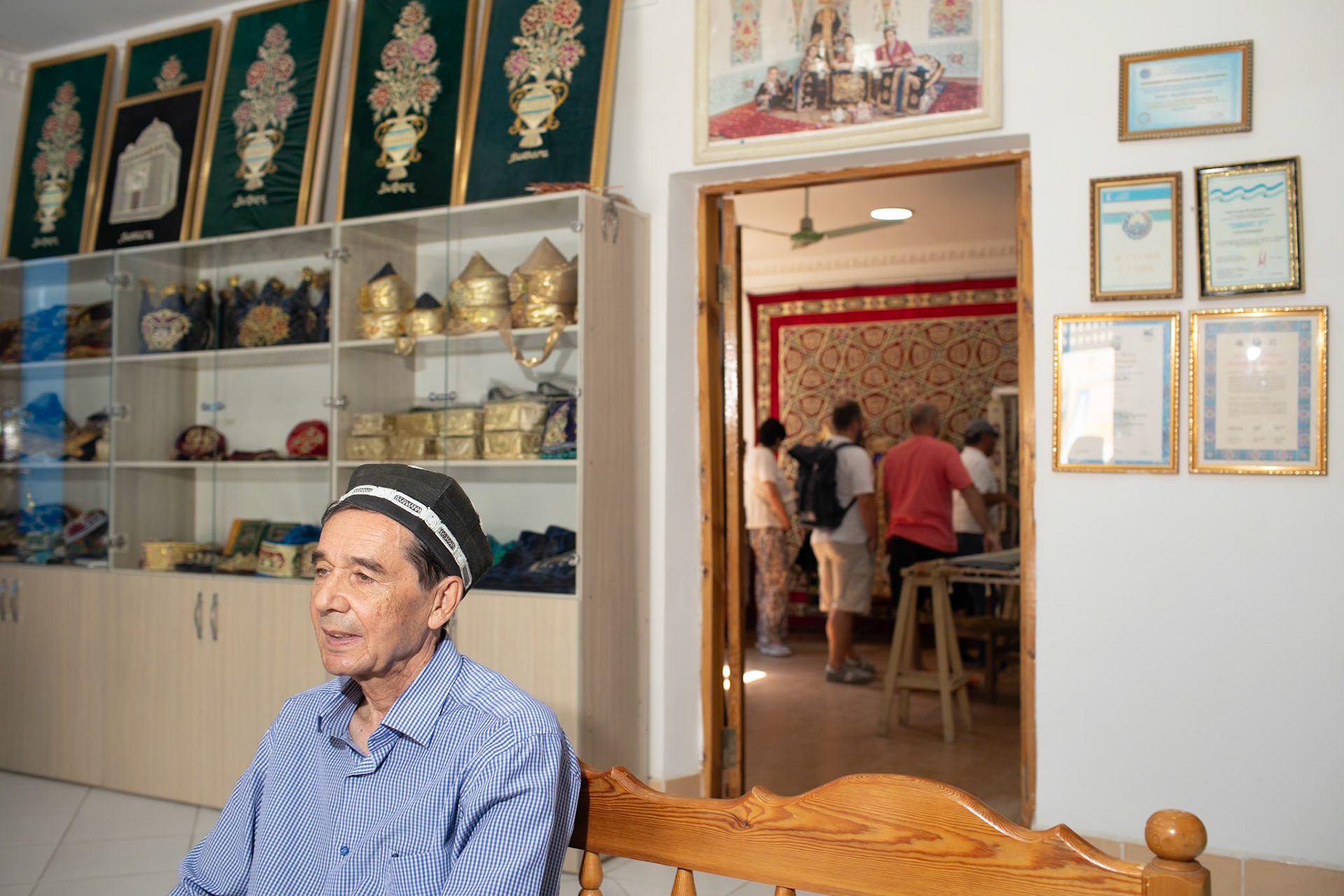 Baxshilo welcomed me into his workshop and home, located off one of the main squares in the silk-road city of Bukhara. Over multiple sessions we spoke about his life, career and craft. He also attended the public exhibition in Bukhara where his portrait was shown alongside images from his workshop.