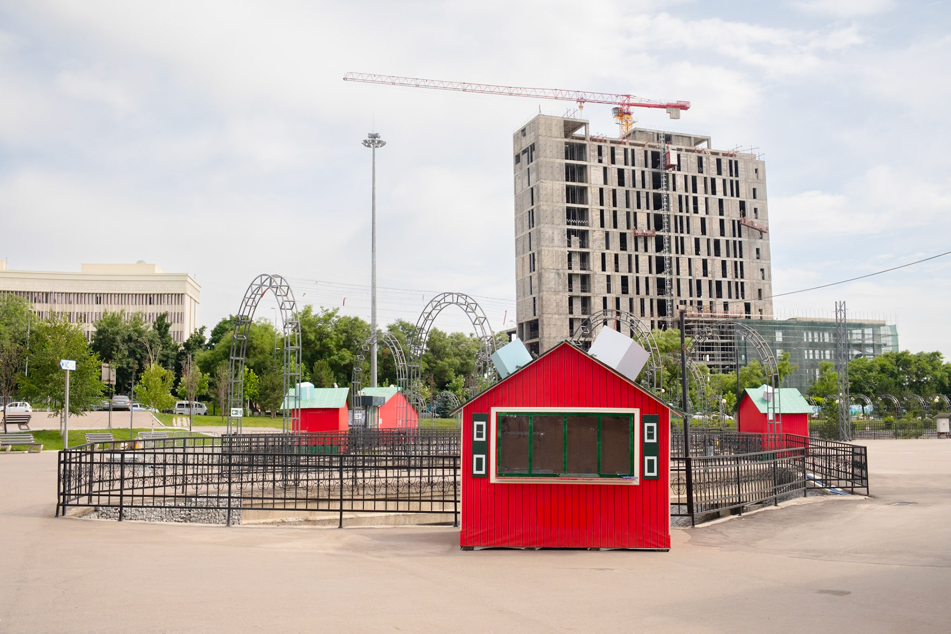 We collaborated to make portrait images within one of her conceptual projects XXXSTAN, where she reimagines a 6th, fictional Central Asian republic and then reflects on the elements of her life and how they are linked to aspects of this society. In this portrait she took me to visit one of the housing districts in the 6th republic's capital.